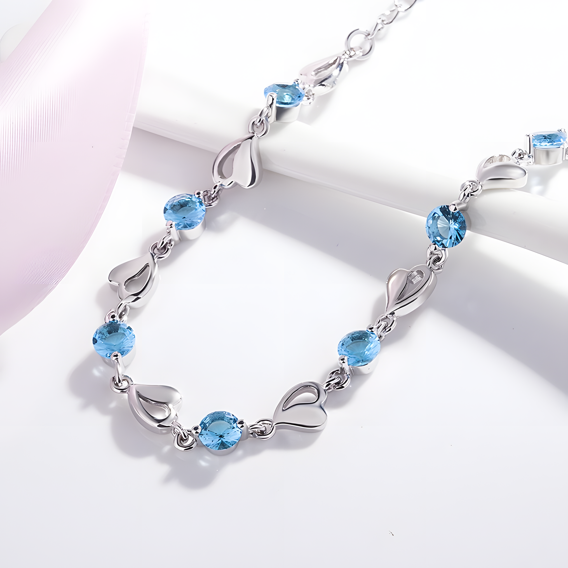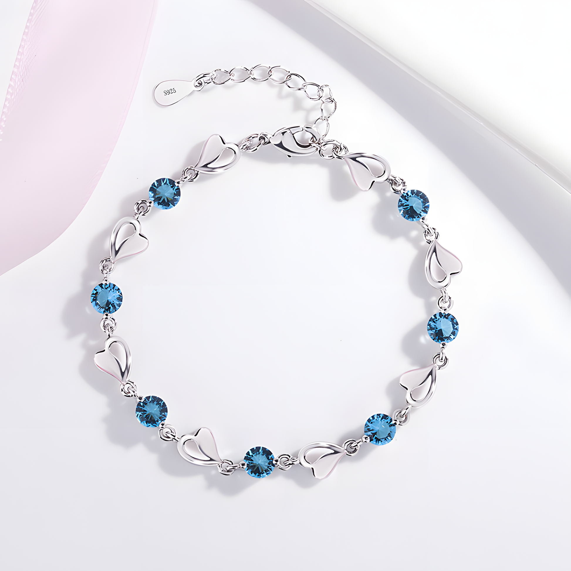 Infuse a pop of color and charm into your look with our Blue Heart Sparkle Bracelet. Featuring shimmering blue stones alternating with sleek silver-toned hearts, this bracelet strikes the perfect balance between romance and elegance. Ideal for brunches, dates, or just brightening up your daily wear — it’s a must-have for every jewelry lover who appreciates graceful details with a hint of glam.