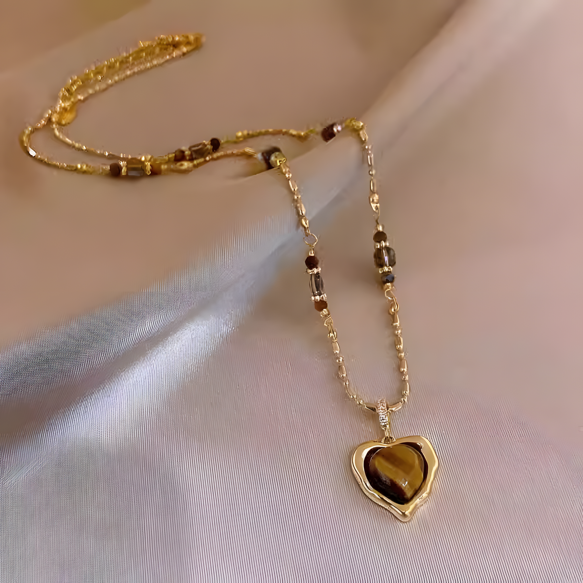 Design: Classic heart-shaped pendant with bead-accented chain.