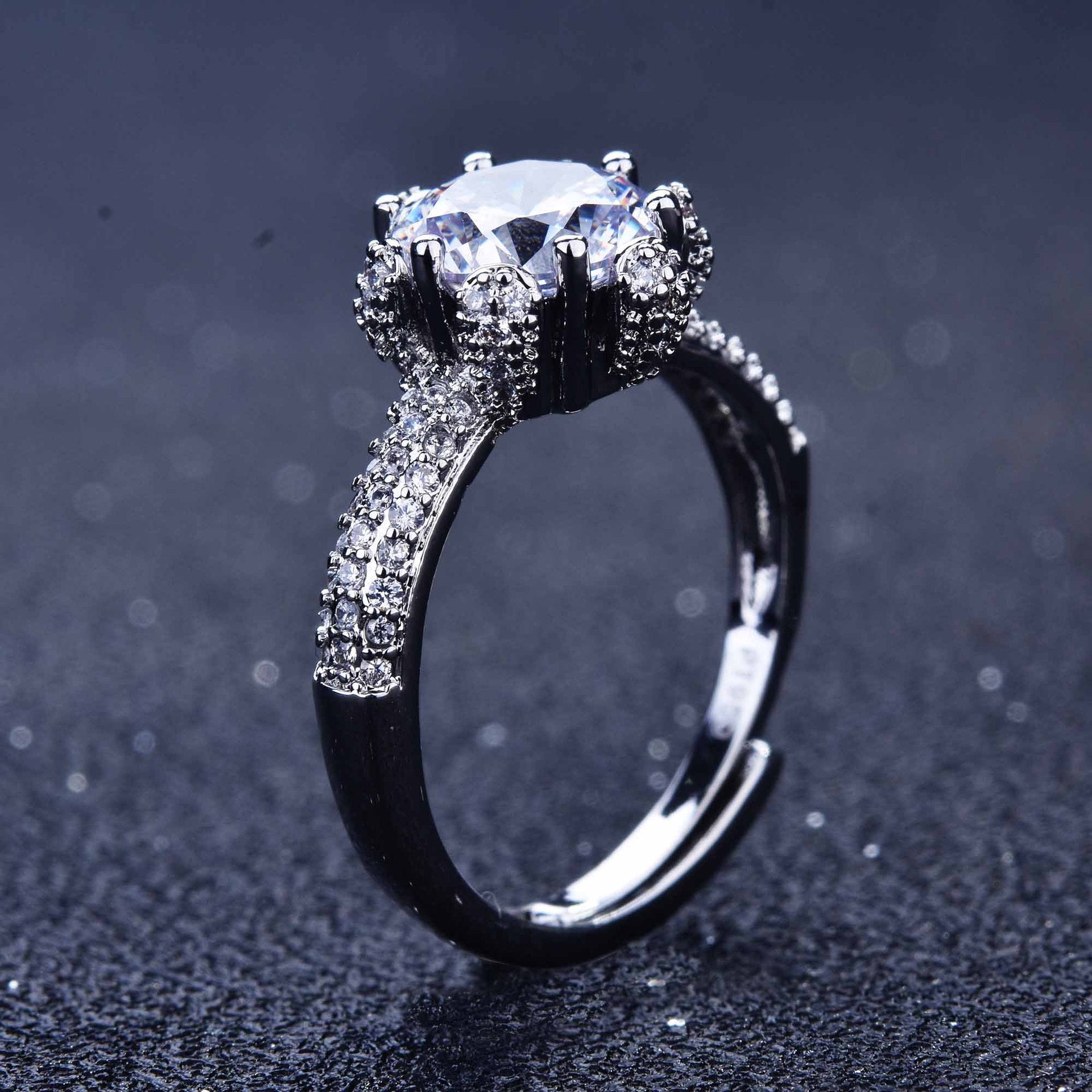 A stunning round-cut stone sits atop a regal crown prong setting—instantly adding royalty to your look.